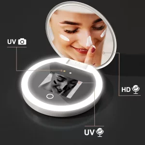 Sjekk hudens sikkerhet enkelt hver eneste dag utendørs. Skinn sterkt lys for best sminke- eller solkremdekning hvor som helst. Unngå oversette områder som raskt kan forårsake hudproblemer. Liten utforming glir lett ned i enhver veske eller lomme.