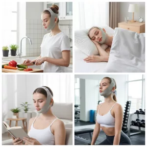 Mykt materiale og stroppen holder seg på plass hele natten. Hver dag ser ansiktet mitt litt mer definert ut, noe som får meg til å smile.