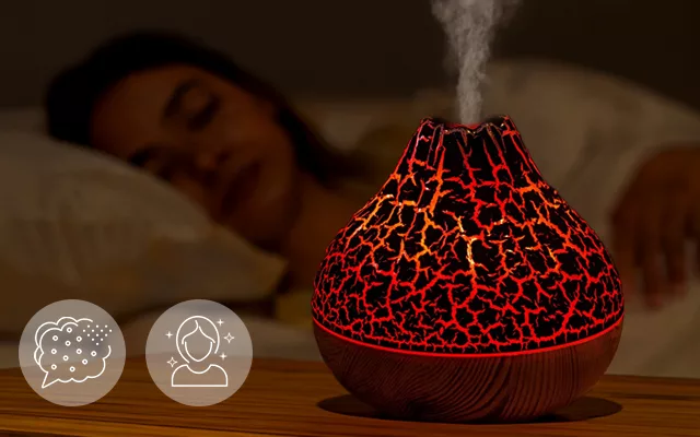 Pust lett og sov bedre hver natt. Ortorex Volcano Luftfukter hjelper raskt og stille med å friske opp tørre rom. Beroligende lys skaper en avslappende stemning ved leggetid.