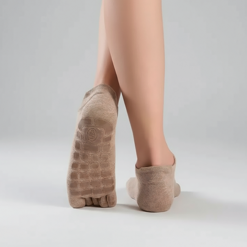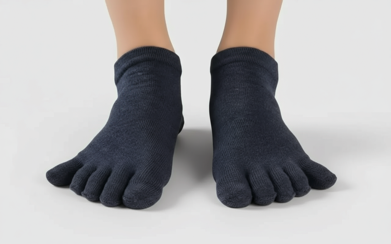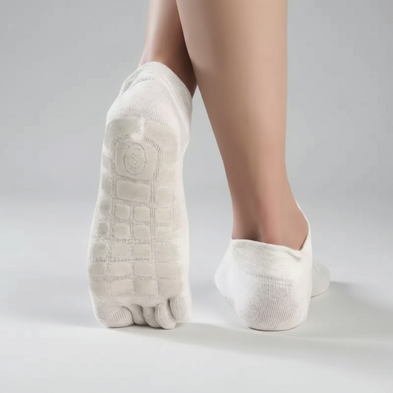 Hver tå holdes atskilt, noe som forhindrer gnissing og irritasjon. Dette designet støtter sunn bevegelse og hindrer opphopning av svette.