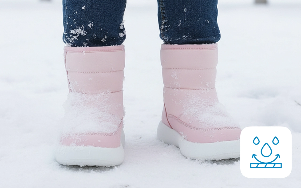 Vann holdes ute, slik at sokkene holder seg tørre hele ettermiddagen. Barn kan hoppe i pytter eller snø uten at våte føtter ødelegger leken.