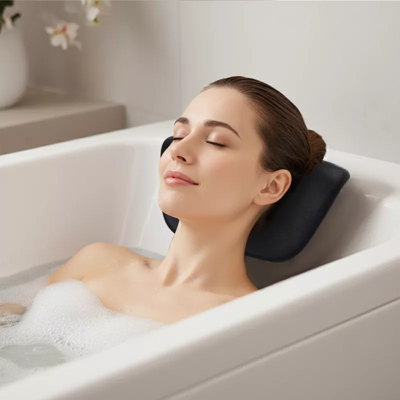 Denne badekarputen støtter nakke og hode med et mykt grep. Den holder holdningen din naturlig mens du nyter hvert øyeblikk i badet.