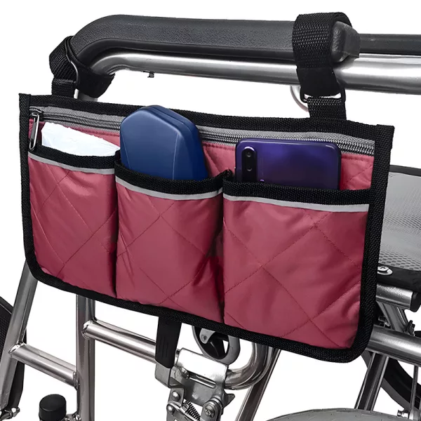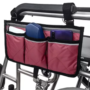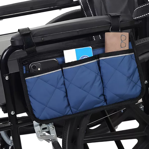 Ortorex rullestolveske festes sikkert og holder seg på plass. Flere lommer hjelper deg å holde orden og finne ting lett. Refleksdetaljer gir bedre synlighet og sikkerhet om natten.