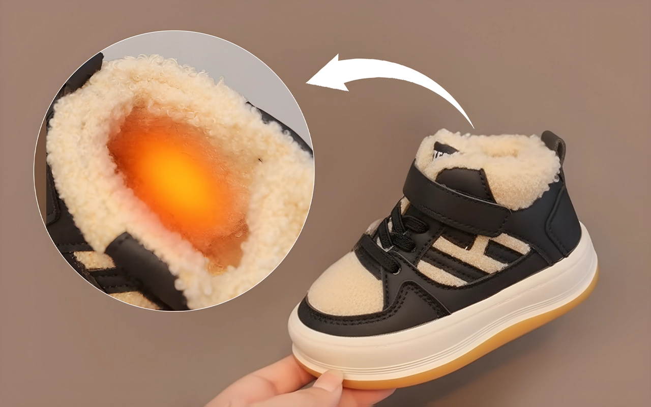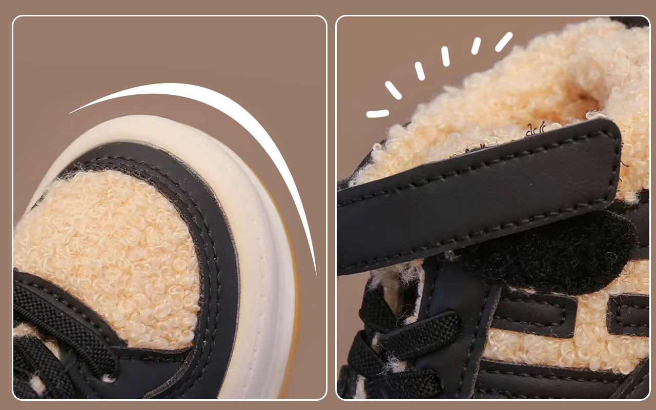 Mykt plysjfôr holder på varmen og beskytter mot bitende vind. Leken forblir morsom fordi tærne aldri blir kalde.