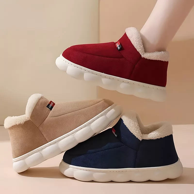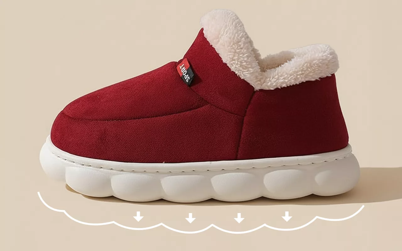 Isolerende plysjmateriale beskytter føttene mot kalde gulv. Nyt avslappende kvelder og føl deg varm og god hjemme.