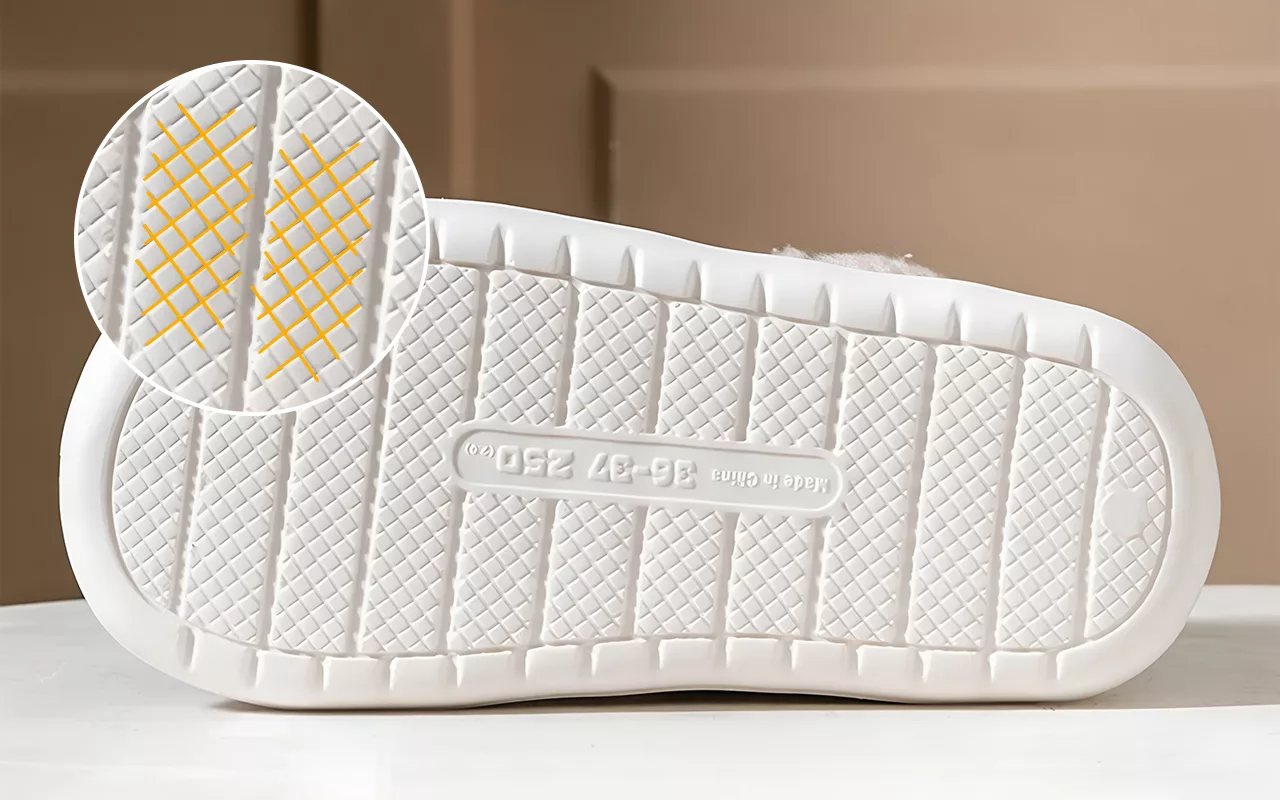 Teksturerte såler gir godt grep på både tre- og flisgulv. Ingen bekymringer for å skli når du beveger deg rundt i hjemmet.