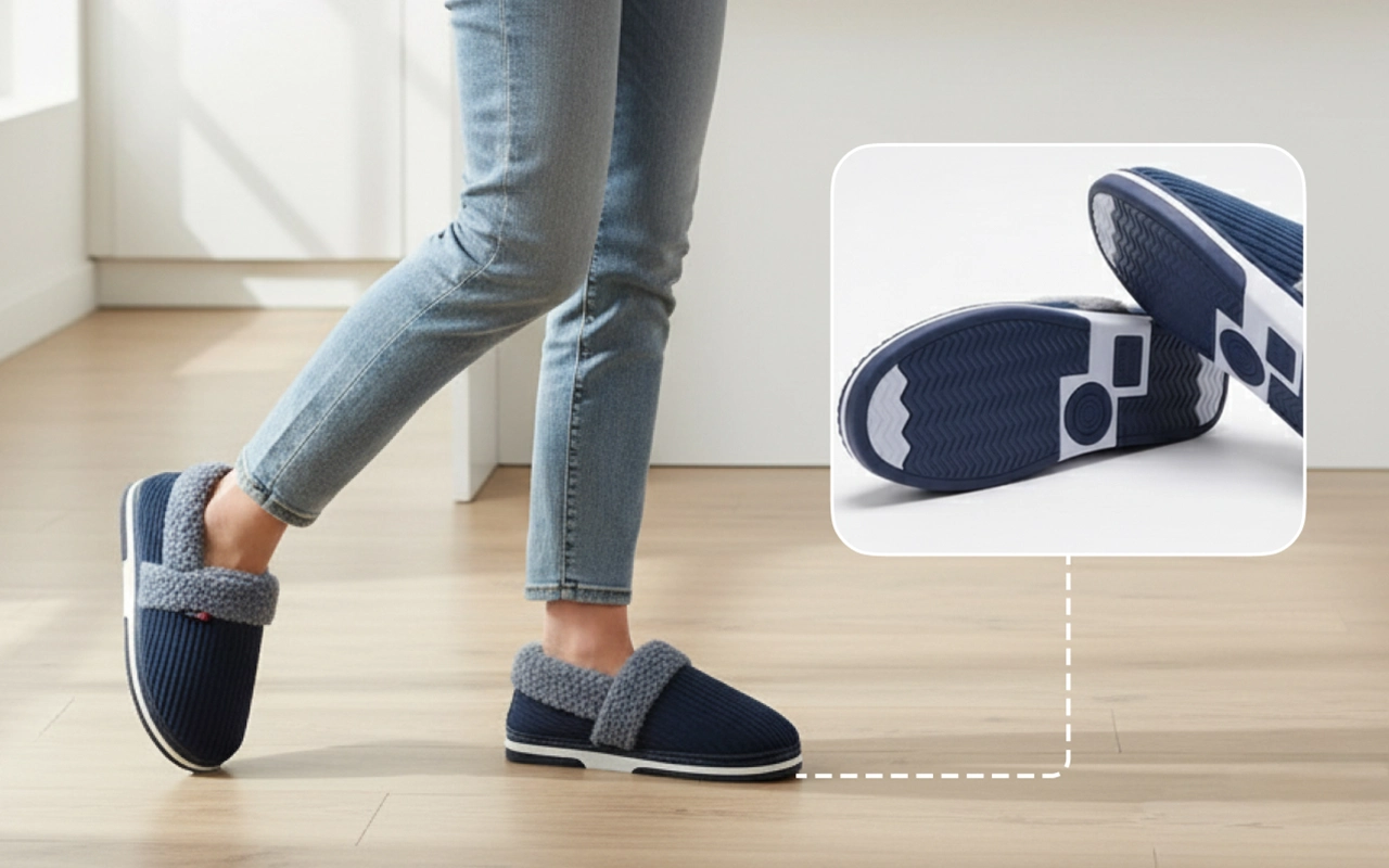 Myk såle demper hvert steg og gjør harde underlag mykere. Beveg deg lettere og mer komfortabelt hjemme.
