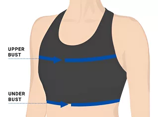 - 2. For å finne målet rundt underbysen, vikle målebåndet rundt brystkassen, rett og jevnt under bysten.
