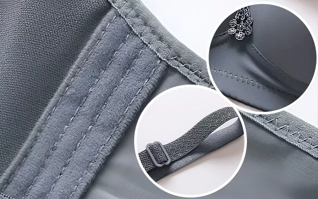 Glatt søm forsvinner under topper og kjoler. Brede stropper og sider forhindrer linjer eller bulker fra å vises.