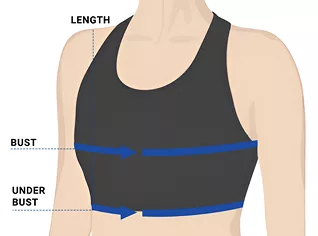 - 4. For å finne underbystemålet, plasser målebåndet rundt brystkassen direkte og jevnt under bysten.