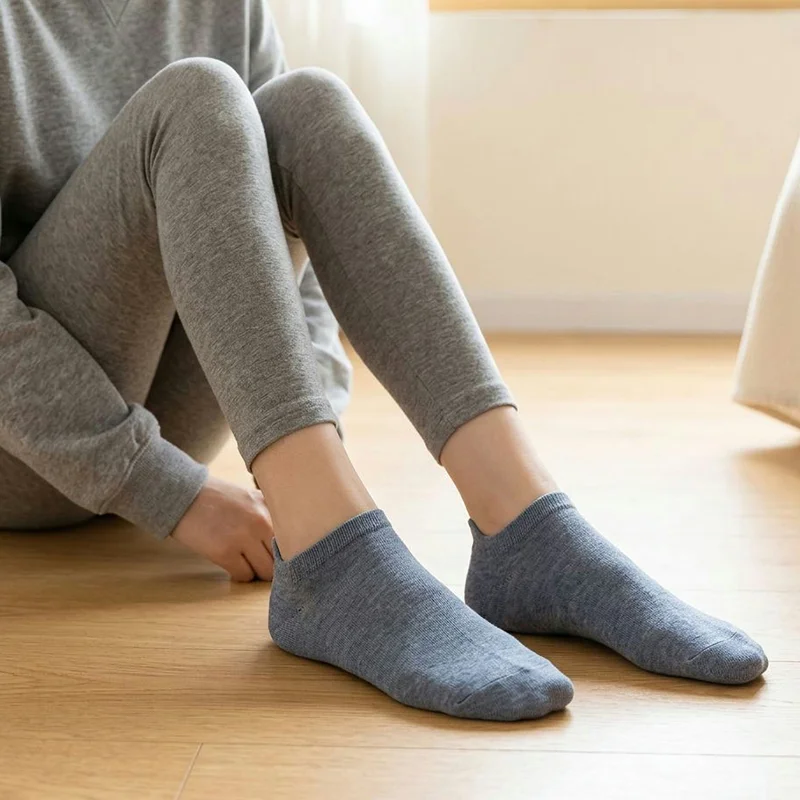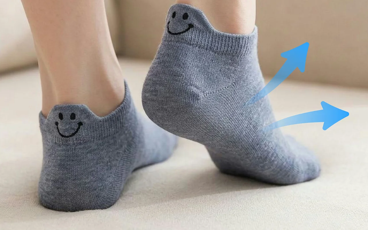 Disse bomullssokkene føles lette, men likevel tettsittende. Jeg brukte dem i sommerheten, og føttene mine holdt seg overraskende kjølige og tørre, selv etter å ha løpt etter barna mine hele ettermiddagen.