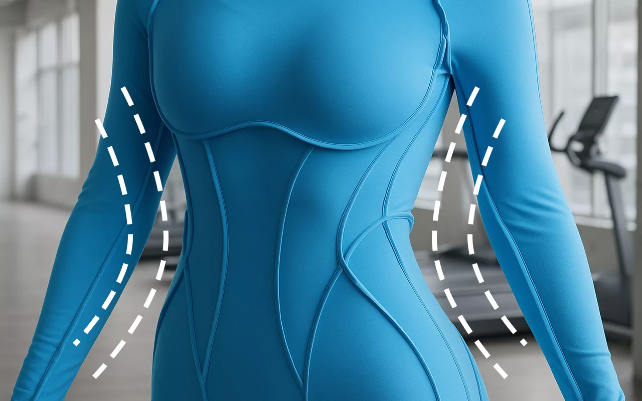 Elsker denne! Den fremhever figuren min og stoffet er superlett. Jeg blir ikke overopphetet selv når jeg presser hardt.