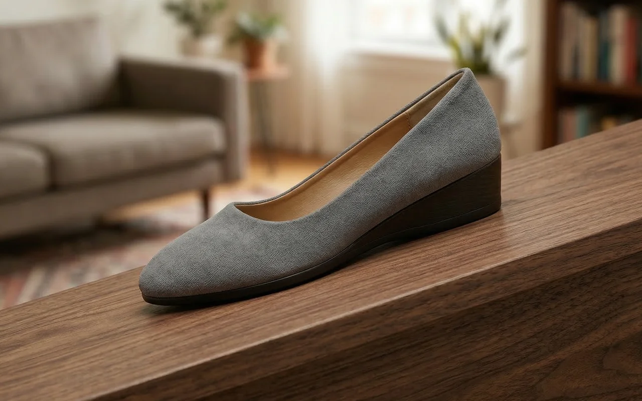 Jeg bruker disse kilehælene til ærender og går rett videre til middag. Føttene mine holder seg glade, grepet føles trygt på våte gater, og de ser fortsatt søte ut.