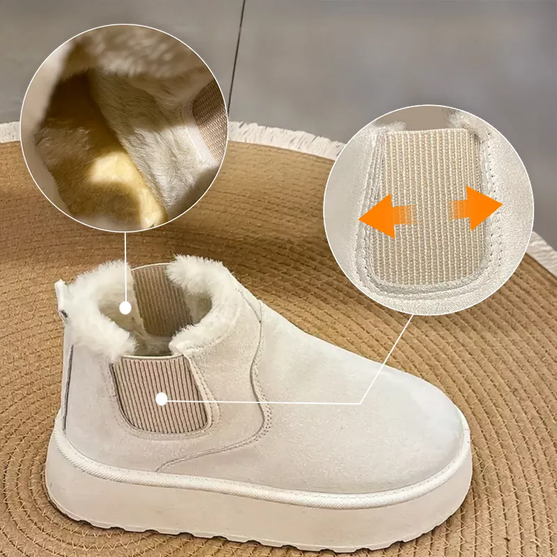 Føttene er pakket inn i mykt plysj, så kulden biter aldri. Selv på frostige morgener føler du deg varm og komfortabel.