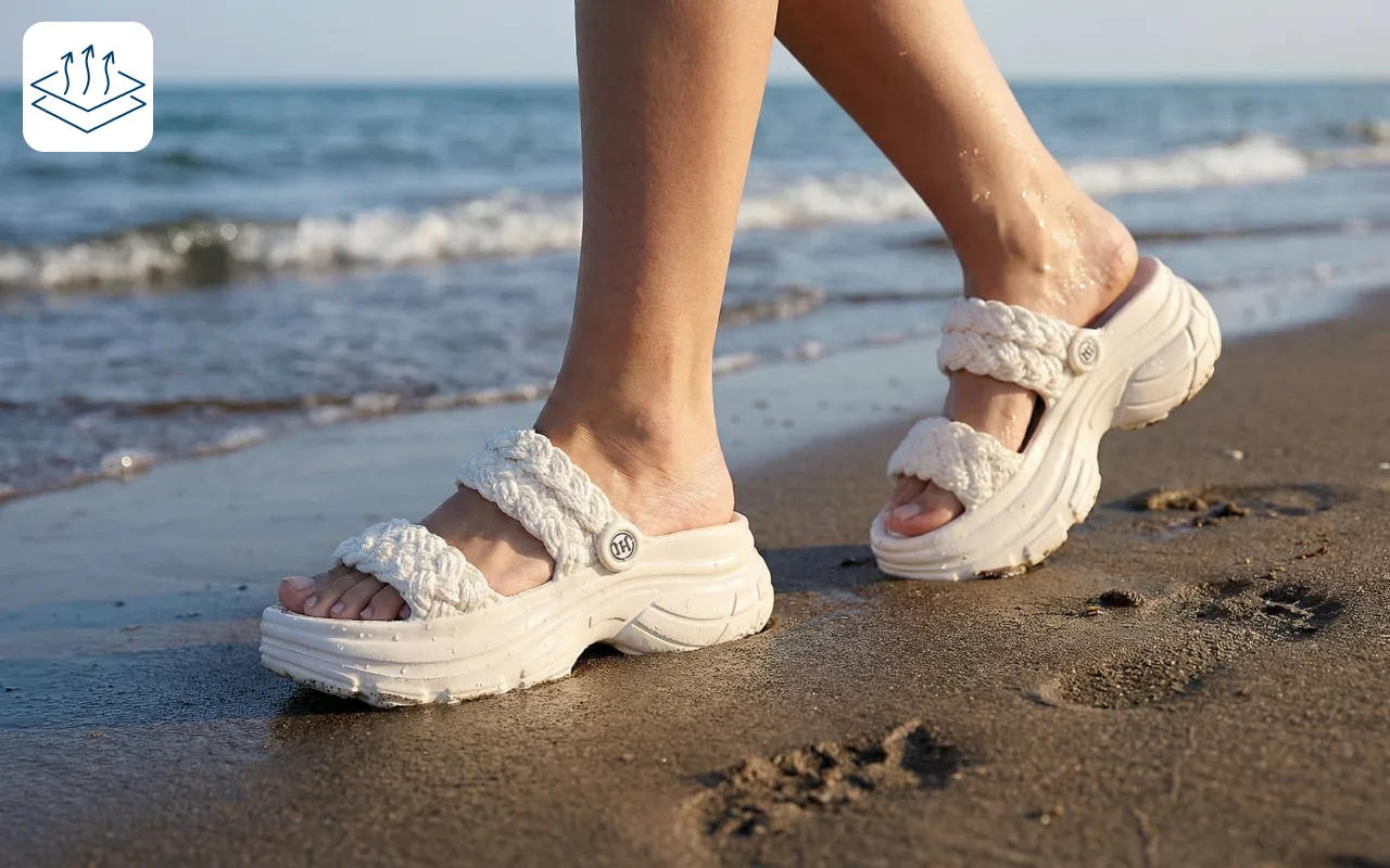 Ortorex platåtøfler holder føttene kjølige hele sesongen. Myke EVA-såler demper hvert steg for varig komfort. Ta dem raskt på før du går hjemmefra eller slapper av inne. Holdbare materialer støtter spaserturer utendørs eller daglige gjøremål.
