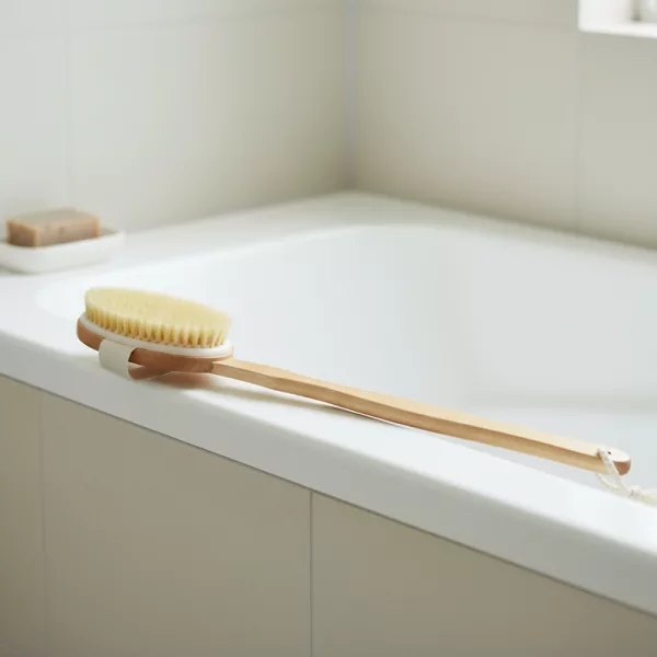 Denne børsten gjør dusjene mine ekstra rene. Den skrubber forsiktig og håndtaket lar meg vaske ryggen uten problemer.