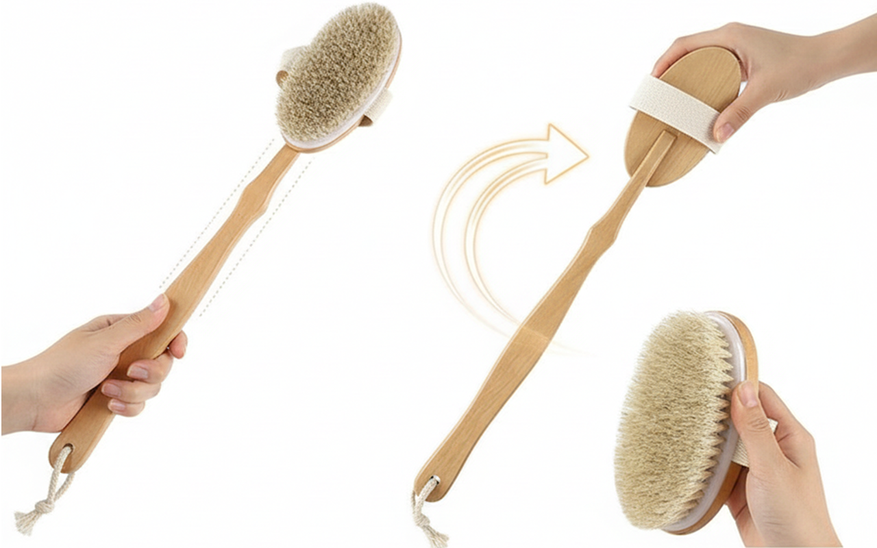 Det er slutt på å slite med å vaske vanskelige områder. Nyt en behagelig badeopplevelse uten å gå glipp av noen del av kroppen. Ortorex-børsten har et langt håndtak som gjør hver vask enkel og stressfri. Treskaftet gir en skånsom berøring i din daglige hudpleie.