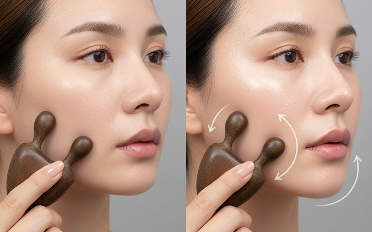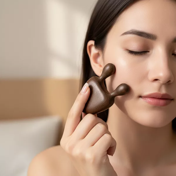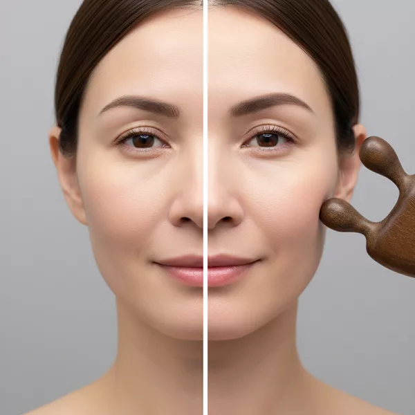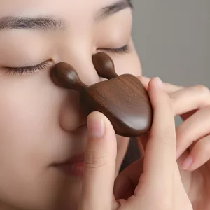 Veldig lett å holde, og trestykket glir så mykt over ansiktet mitt. Området under øynene er ikke like hovent, og kinnene ser mer løftet ut.