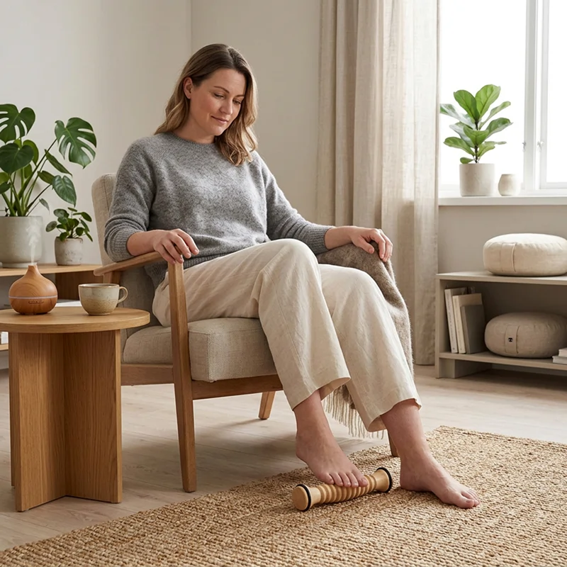 Jeg bruker rullen mens jeg leser på sofaen. Det er overraskende beroligende, nesten som en liten massasje, og føttene holder seg varme og avslappede etterpå.