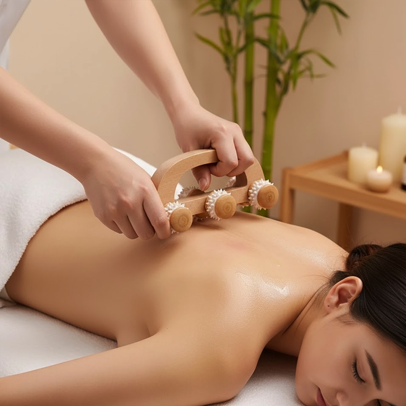 Miljøvennlig konstruksjon i tre betyr at ingen harde plastdeler berører huden. Myke silikontupper gjør hver økt avslappende og trygg.