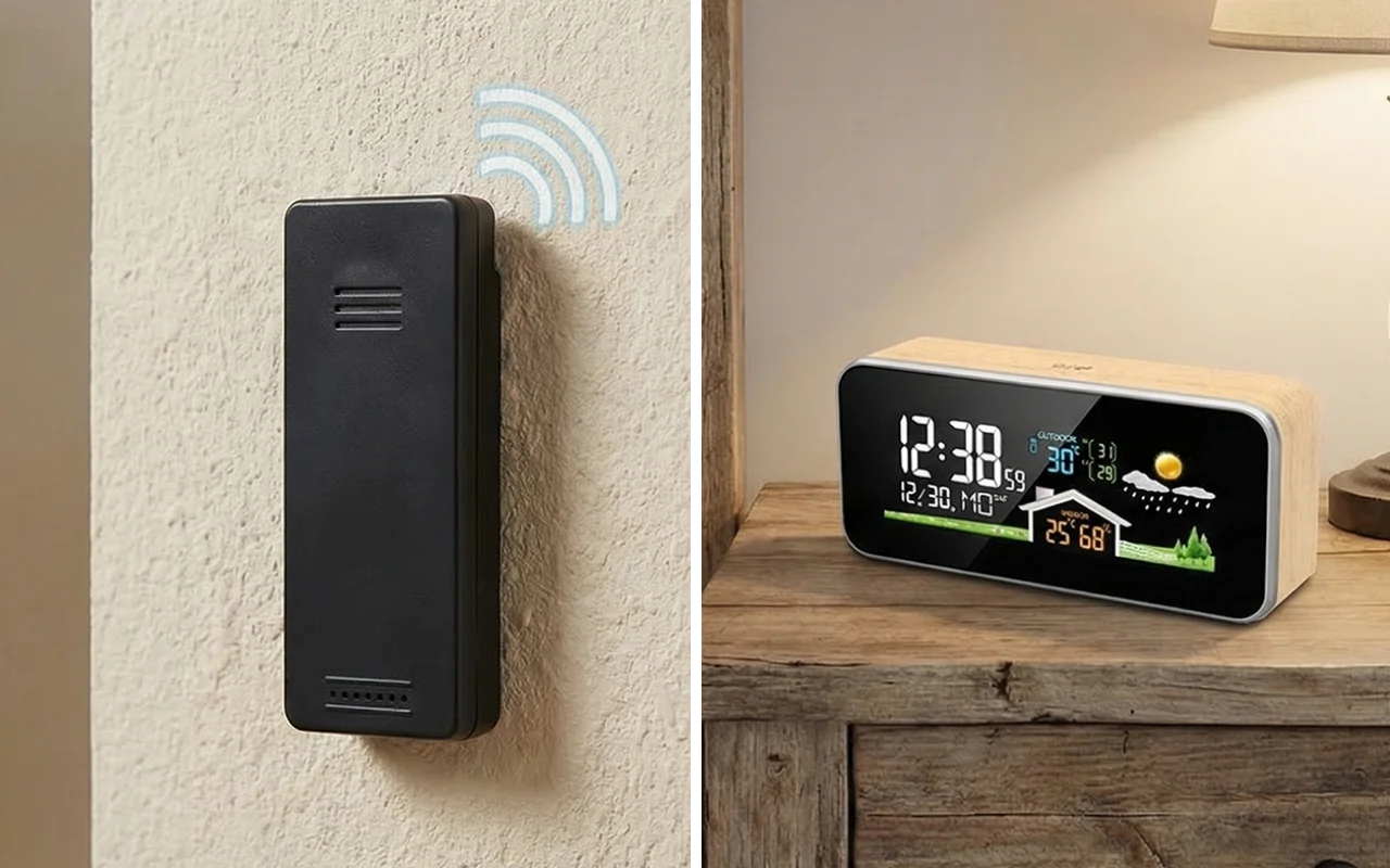 Jeg er veldig fornøyd med denne enkle klokken og måleren. Den ser ut som ekte interiør, ikke teknologi, men viser likevel tid, varme og fuktighet tydelig hver dag.