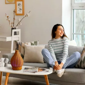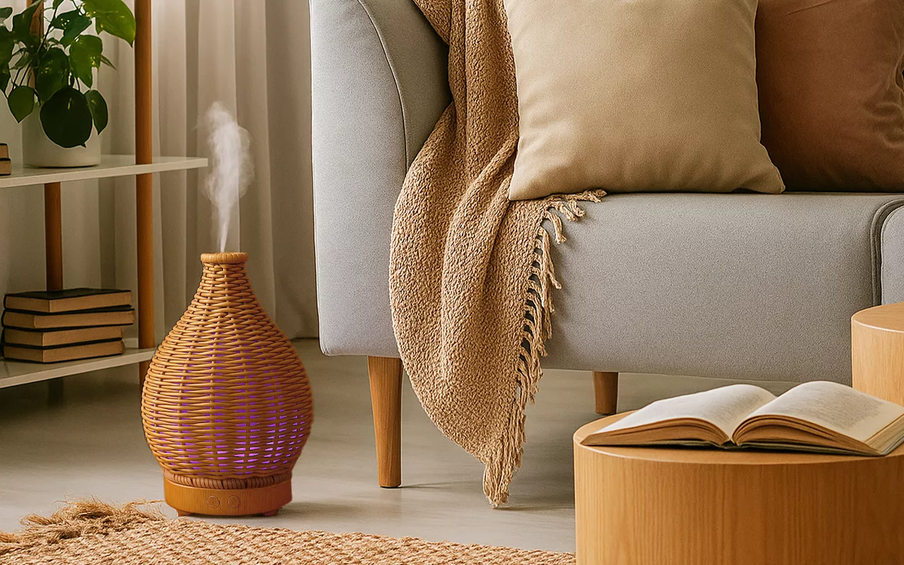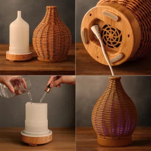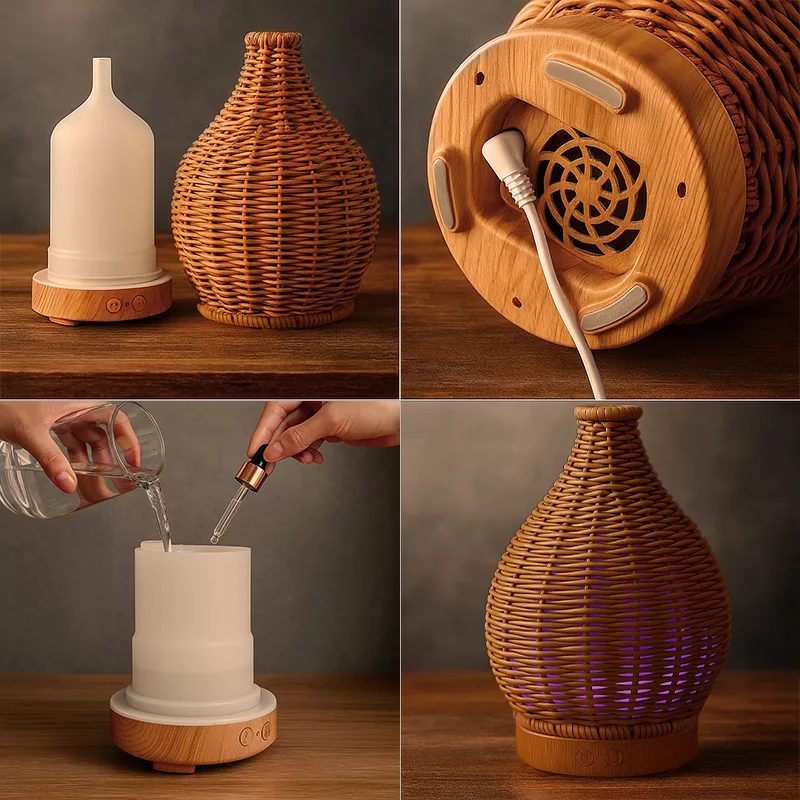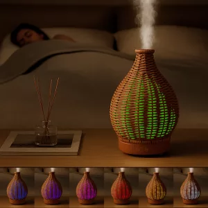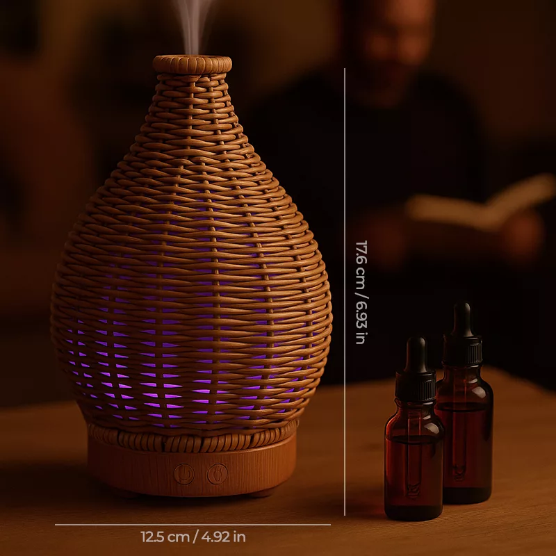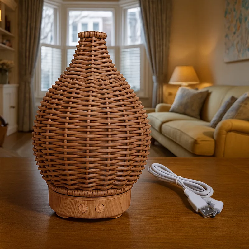 Solid og fin! Det flettede designet passer hvor som helst hjemme, og tåkemaskinen vekker meg aldri. Jeg bruker den hver dag for allergien min.